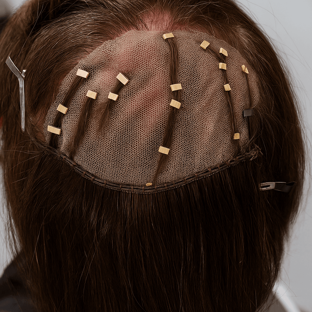 Mesh integration is a non-surgical system that blends new hair seamlessly with the hair you still have. Instead of covering up, it integrates. A fine, breathable mesh is custom-fitted to your scalp, then hand-woven with human hair to match your colour, density, and style.